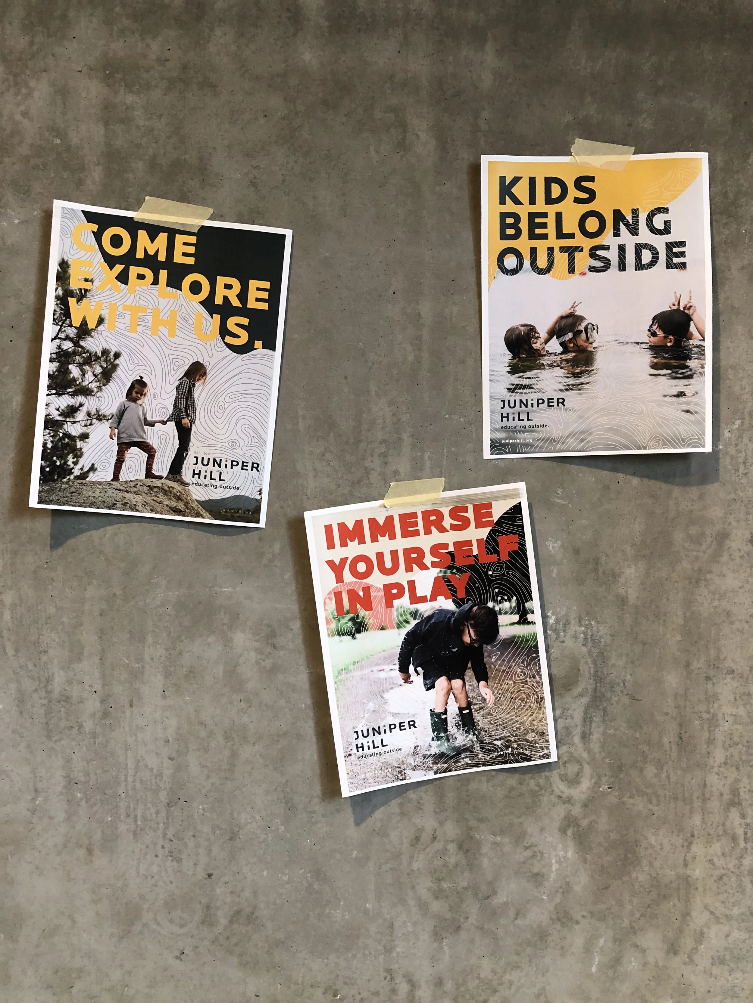 This phase of the process focused on examining Juniper Hill’s current brand values and identity, discovering what really sets them apart from other schools. This involved an exploration of the competitive landscape of local non-profit brands and educational institutions. Inspired by these insights, I brainstormed visual metaphors and dynamic wordmarks to refresh the current logo and imagery, while keeping in mind the unique culture of Juniper Hill.