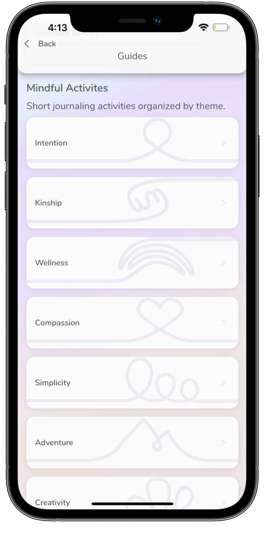 I partnered with the Design Lead to create an icon library used to enhance Guided Journal experiences and onboarding within the app.